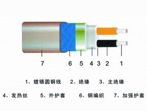 電源母線為兩根平行的J緣軟銅線,在內(nèi)J緣上纏繞鎳鉻電熱絲,并將電熱絲每隔一定距離(即“發(fā)熱節(jié)長(zhǎng)”)與母芯線連接,從而形成連續(xù)的并聯(lián)電阻。母芯線通電后,各關(guān)聯(lián)電阻發(fā)熱因而形成一條連續(xù)的加熱帶,而且可以根據(jù)使用情況發(fā)熱節(jié)長(zhǎng)度任意剪接。