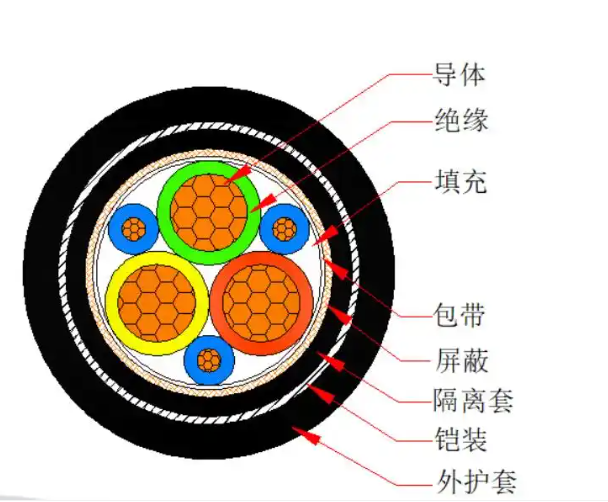 ? 鎧裝層:采用鋼帶鎧裝,增強電纜的機械強度和耐電壓沖擊性。