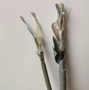2線對4芯(2x 2x24AWG)(2*2*0.2)(2*2*0.5)(2*2*0.75)(2*2*1.0)(2*2*1.5)多股絞合鍍錫銅絲,PE絕緣護套;為適用于復雜的工業噪聲環境,特采用鋁箔/聚酯復合帶100%屏蔽率+鍍錫銅編制網90%屏蔽率共雙重屏蔽,并附有獨立TC接地導體,工業灰色PVC外護套,特性阻抗120歐姆 。