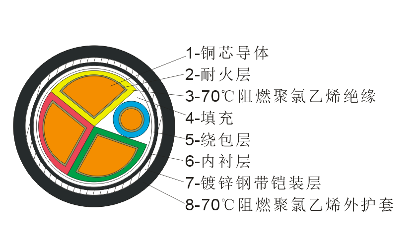 銅芯聚氯乙烯絕緣聚氯乙烯護套鋼帶鎧裝耐火電力電纜 |