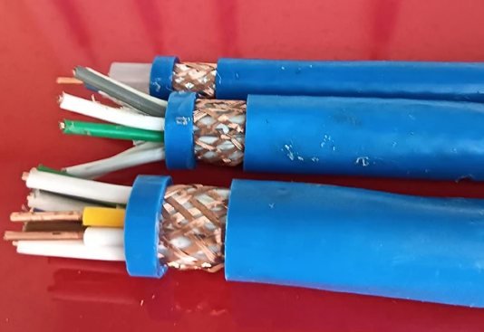 MKVVRP | 煤礦用銅芯聚乙烯J緣聚氯乙烯護套編織屏蔽阻燃控制軟電纜 | (4-61)*(0.5-2.5) (4-37)*(1.5-2.5) | 鋪設在大磁場室內,電纜內,管道等固定場合 |